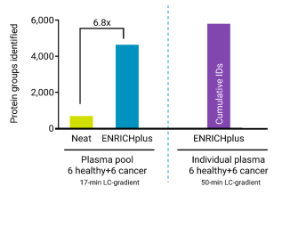 ENRICHplus allowed the identification of a cumulative number of 5,800 protein groups (human EDTA plasma) in a small clinical study (6 healthy donors, 6 colorectal cancer patients)